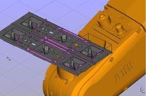 软件可以泛起机械人的实时状态,因此它可以自动优化的和完成加工路径的支解事情。在软件中只要选择好工件需要加工的路径,软件就会凭据激光一次性能够加工的规模,对产品目今姿态下可以加工的规模进行支解。软件自动进行盘算、完成,不需要人工干预。